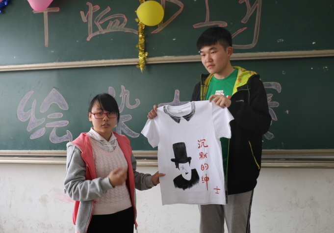 比赛分为选手T恤绘染,作品展示及作品含义解释三节环节。绘染的一个小时多里,同学们集思广益,用双手和画笔在T恤上画出一片属于自己的青春,有的在T恤上画上可爱婉约的简笔画,有的在T恤上用涂鸦的方式绘出五彩缤纷的碎花,测绘15-1班肖荣等同学则另辟蹊径,在T恤上留下不同颜色的手掌印,象征着她们团结的大家庭。每组作品也被选手赋予了特别的寓意,有的是自己青春的诠释、有的是热爱生活的象征。