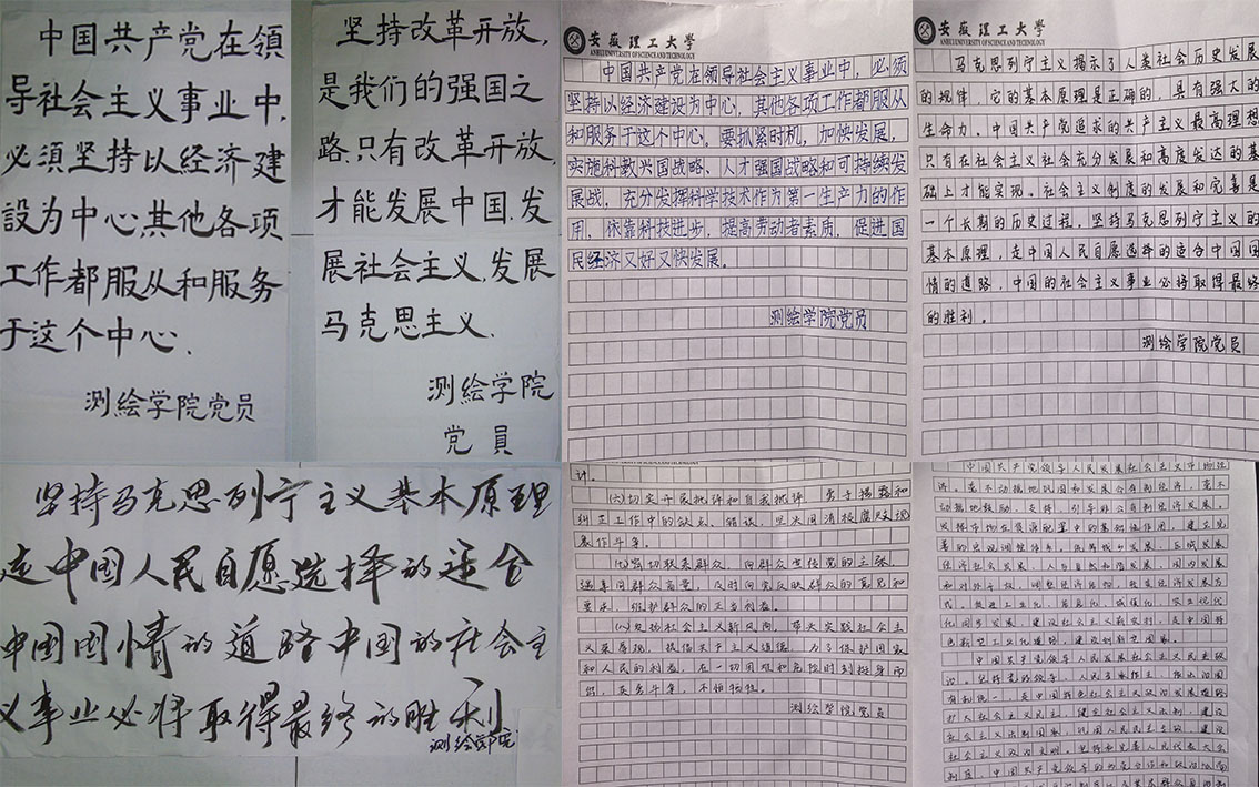 支部党员们认真抄写了党章的内容,或者是刚劲有力的毛笔字,或者是工工整整的钢笔字,一笔一画都彰显着党员们对党章的忠诚。
