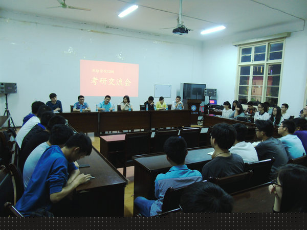 红楼201会议室召开,参加交流会的有2012级于伟宣、黄冬、彭先敏、刘梦雪等七位学生及2013级准备考研的51位同学。