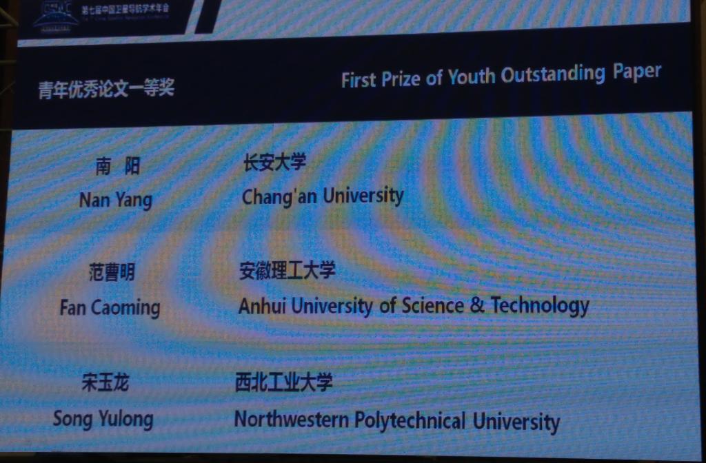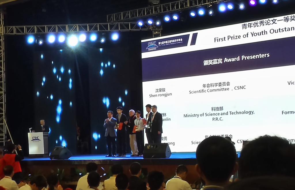 中国卫星导航学术年会已被全球卫星导航系统国际委员会(ICG)确定为国际三大卫星导航学术会议之一,是国际卫星导航领域的大型交流平台。在余学祥教授的指导下,范曹明同学的《卫星姿态异常对相位缠绕的影响及其改正模型》论文,在本届年会中获得青年优秀论文一等奖;在颁奖典礼上,原科技部副部长曹健林为范曹明同学颁发奖杯与奖状。