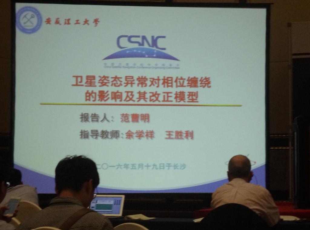 5月19日上午,在S5精密定位技术分会的专题报告中,范曹明同学作了题为《卫星姿态异常对相位缠绕的影响及其改正模型》的报告,详细阐述了其研究成果的原理、公式推导过程以及结论。