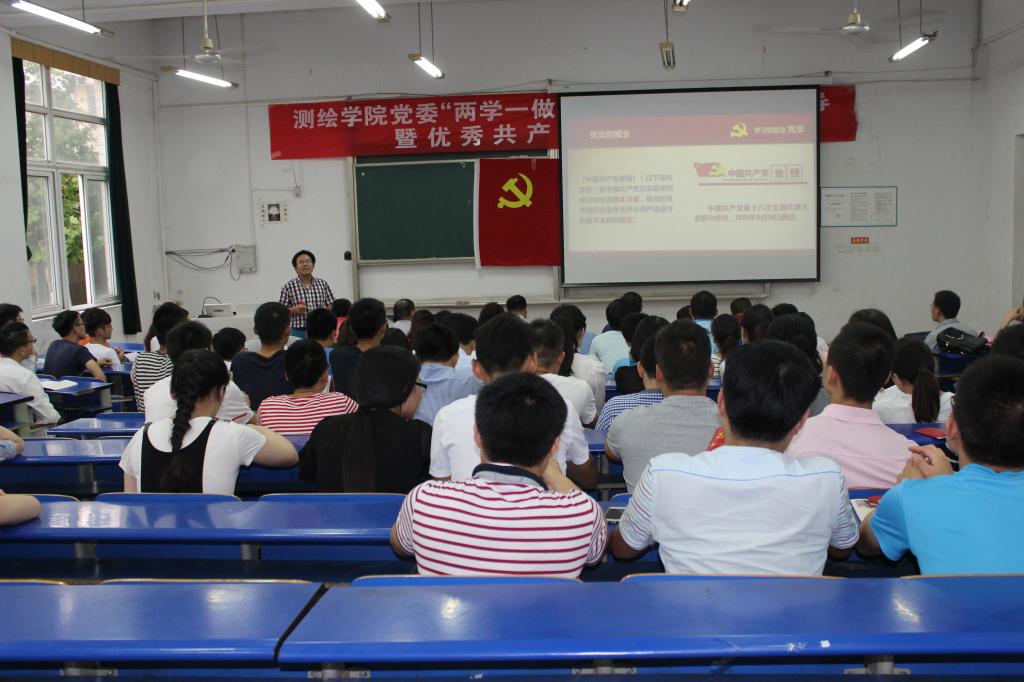 党委委员、地信教工党支部书记王世航同志作了“中国共产党章程学习解读”的党课报告,报告深入阐释了党的性质、党的宗旨、党的最高理想最终目标和党的发展历史,概括指出做合格党员的基本要求、建过硬党支部的具体措施。