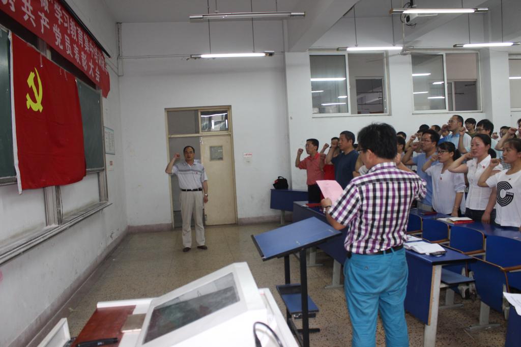 《关于表彰优秀共产党员的决定》,院党委书记陈艺、院长赵志根对院级优秀师生党员进行了颁奖。接着,全体师生党员面向鲜红的党旗,在陈艺的带领下庄严宣誓。