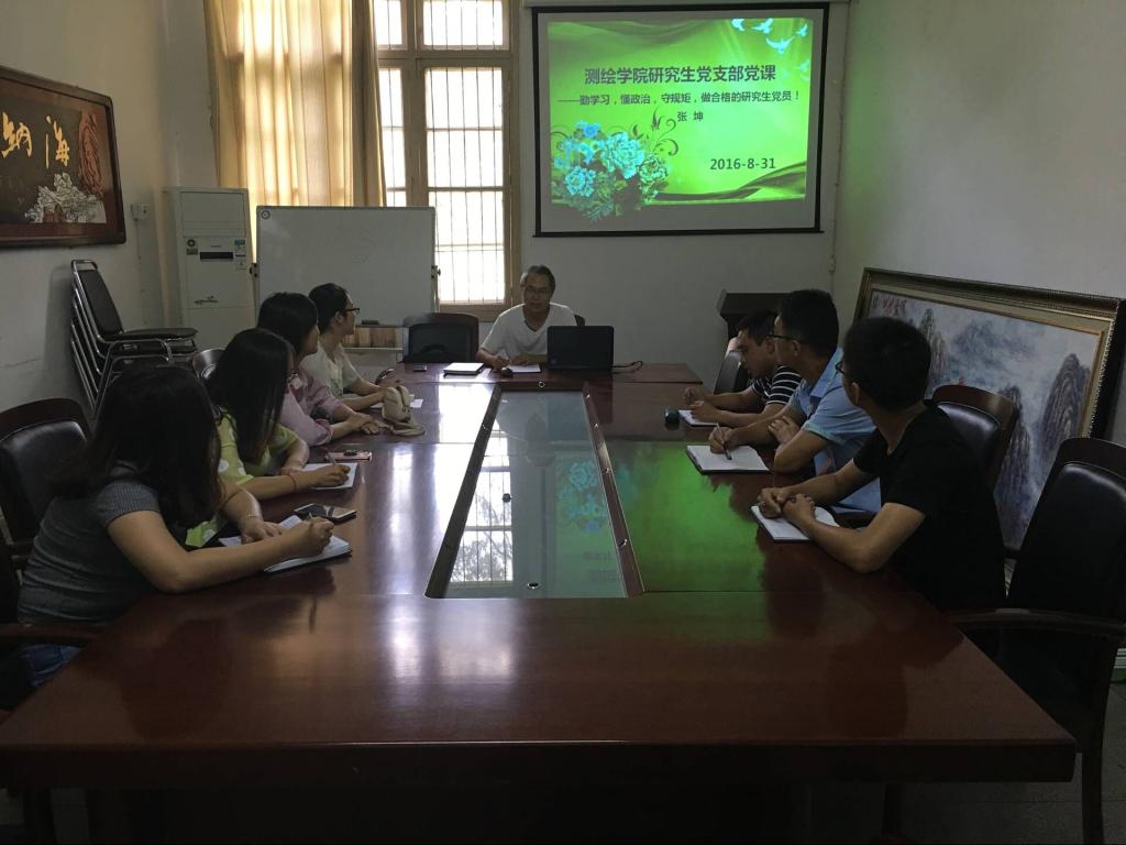 张坤讲课的题目为《勤学习、懂政治、守规矩,做合格的研究生党员》。张坤首先回顾了全党开展“两学一做”学习教育的背景,介绍了支部开展“两学一做”活动的具体安排。紧接着,张坤结合研究生工作实际详细讲述了如何做一名合格的研究生党员。他告诉大家,研究生党员不仅要带头搞好业务学习,带头搞科研,更要注重政治理论学习,不断提高自己的政治素养和理论水平,同时,研究生党员还要带头“守规矩”,严守政治纪律,遵守法律法规和校规校纪。最后,他鼓励大家,作为党员不仅要做好自己的事情,更要发挥共产党员的优良作风,起到模范带头作用,在困难面前积极向前,在利益面前主动靠后,尽自己所能服务好身边的人。