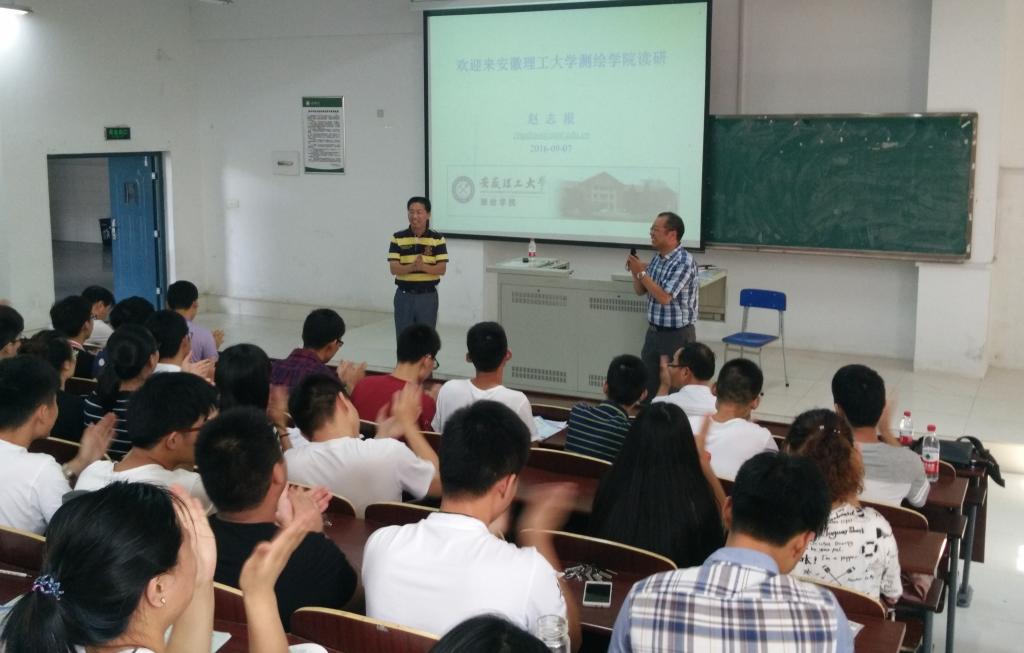 宣讲会上,赵志根介绍了测绘老王论坛 的基本情况、学科建设、专业设置、师资力量、研究生招生和调剂政策、招生规模以及奖助体系等方面内容,发放了学校统一制作的研究生招生宣传资料,并就同学们感兴趣的问题进行了互动交流。宣讲会由戴仕宝主持。
