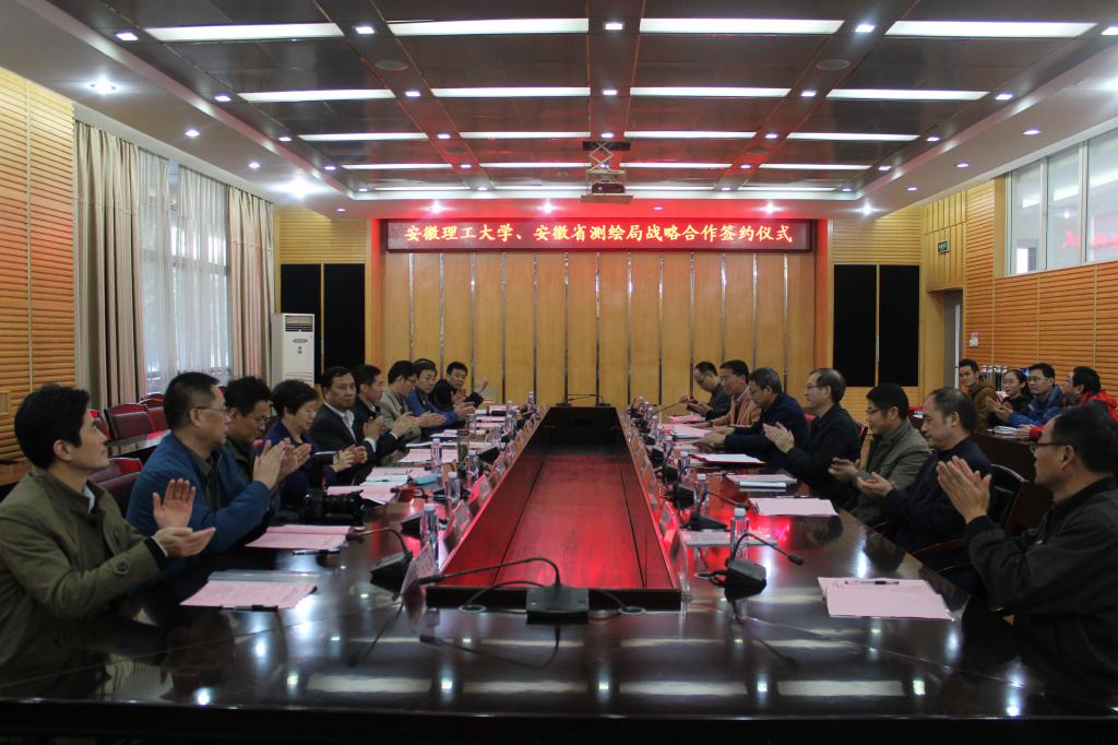 与安徽省测绘局战略合作协议签署暨测绘学科兼职教授聘任仪式在校本部图北会议室隆重举行。校长王其东、副校长孟祥瑞出席了会议,发展规划处处长殷志祥、科技产业处副处长王从东、测绘老王论坛