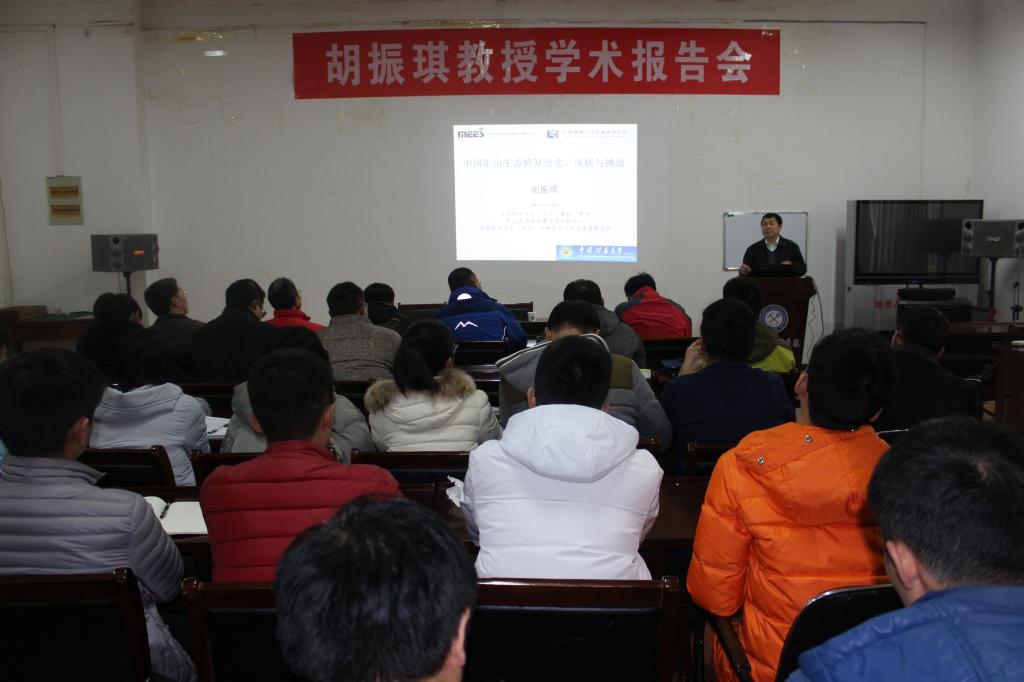 胡振琪教授围绕三方面的内容展开:中国矿山生态修复的历史与现状、中国矿山生态修复的法律基础、中国矿山生态修复的问题与挑战。胡振琪还在报告中与大家分享了自己求学和工作的点点滴滴,以及从事科学研究的经验和心得。报告会结束后,胡振琪与师生就如何申请课题、如何做研究,以及土地复垦中的具体问题进行了热烈讨论。