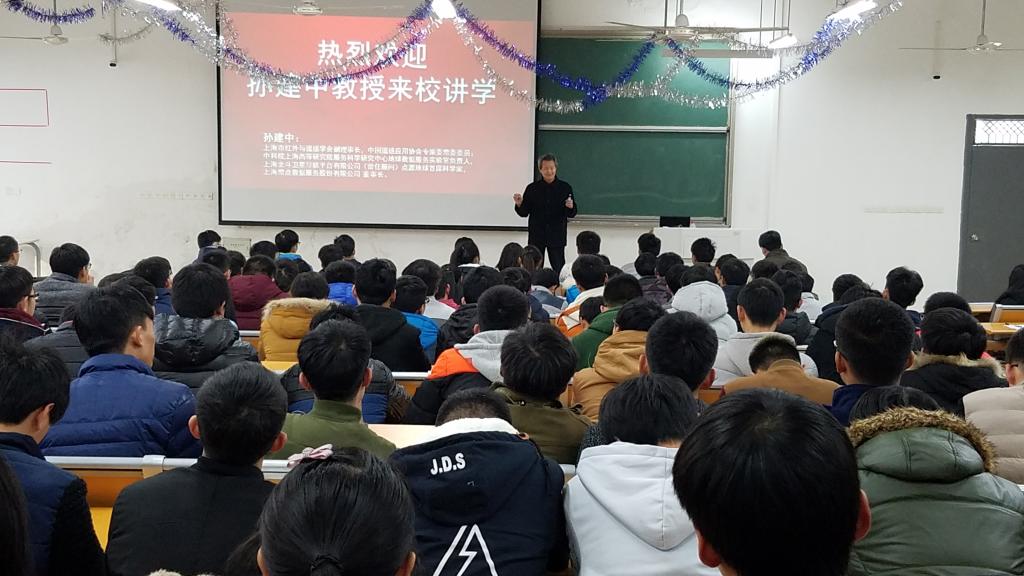 12月30日,校友孙建中在新校区天工楼105教室为2016级测绘老王论坛