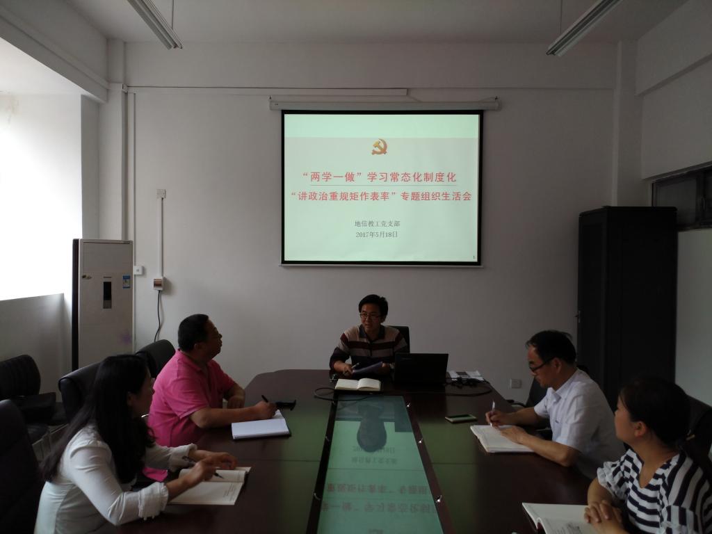 关于推进“两学一做”学习教育常态化制度化的实施方案》、《关于在推进“两学一做”学习教育常态化制度化中开展“讲政治、重规矩、作表率”专题教育的实施方案》的文件要求,5月18日下午,地信教工党支部在南404会议室召开“讲政治、重规矩、作表率”专题组织生活会,老王论坛