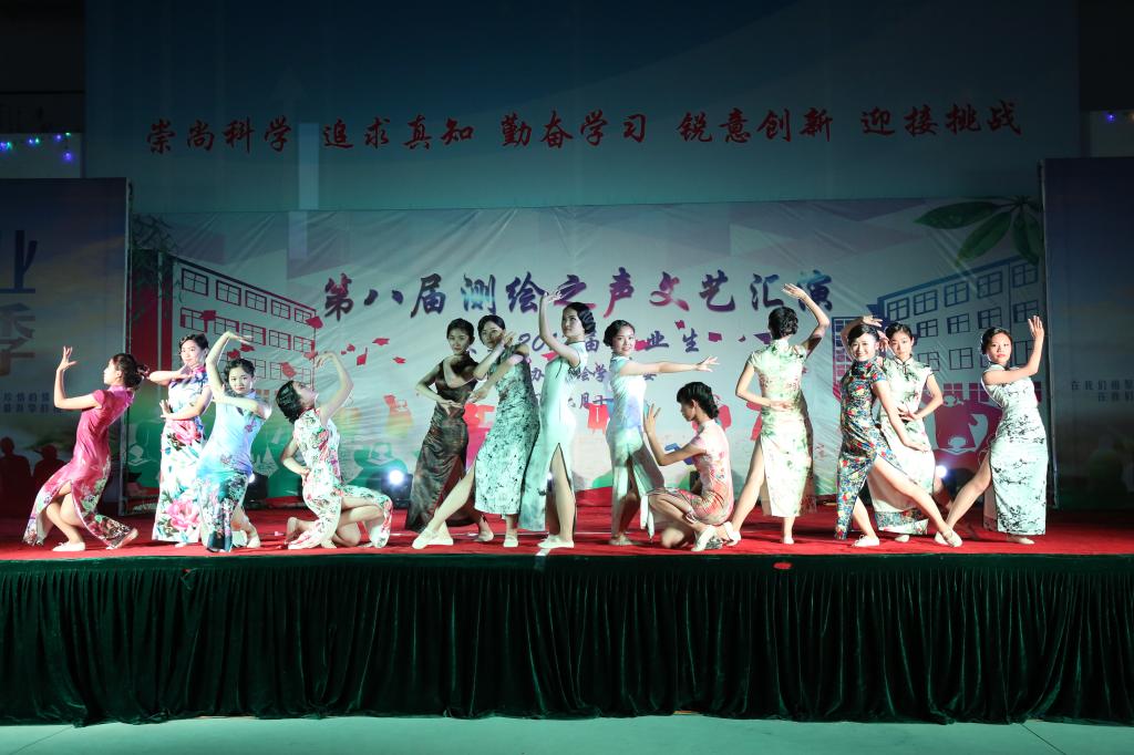 女生们身穿旗袍,伴着激昂的旋律,舞姿优美,一支《金陵十三钗》魅力十足,现场气氛达到高潮。赵兴旺、王世航等老师的《真心英雄》赢得阵阵喝彩。民谣合奏《春风十里》,给毕业生们送去了暖暖的祝福。舞蹈串烧《劲舞青春》与武术《武动乾坤》,动感十足,充分展现了测绘学子的精气神。吴军携学工队伍老师和学生带来朗诵《安理礼赞》,充满着热情与感动,表达了老师对学生的祝福与关爱,学生对老师、母校的感恩与不舍。音乐情景剧《不说再见》,点明晚会主题,欢乐与泪点共存。
