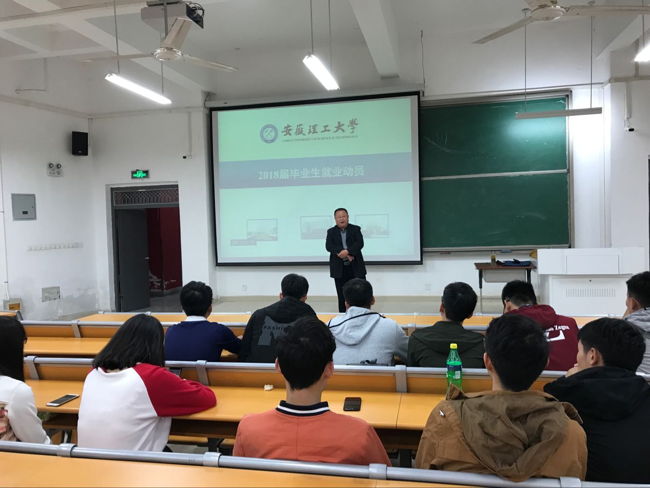 近几年就业情况进行了深入分析,对全国经济稳中向好背景下的2018届就业形势进行了科学研判。就如何获取有效的就业信息、如何为面试做准备、就业推荐表的使用、就业协议书的签订流程等相关事项做了详细介绍。吴军号召同学们主动出击,正视现实,敢于竞争,不怕挫折,树立发展的就业观,同时告诫大家在积极就业的同时,要处理好考研准备与专业课程学习、就业与课堂学习两对关系,顺利完成2018届毕业生各项就业工作目标和任务。