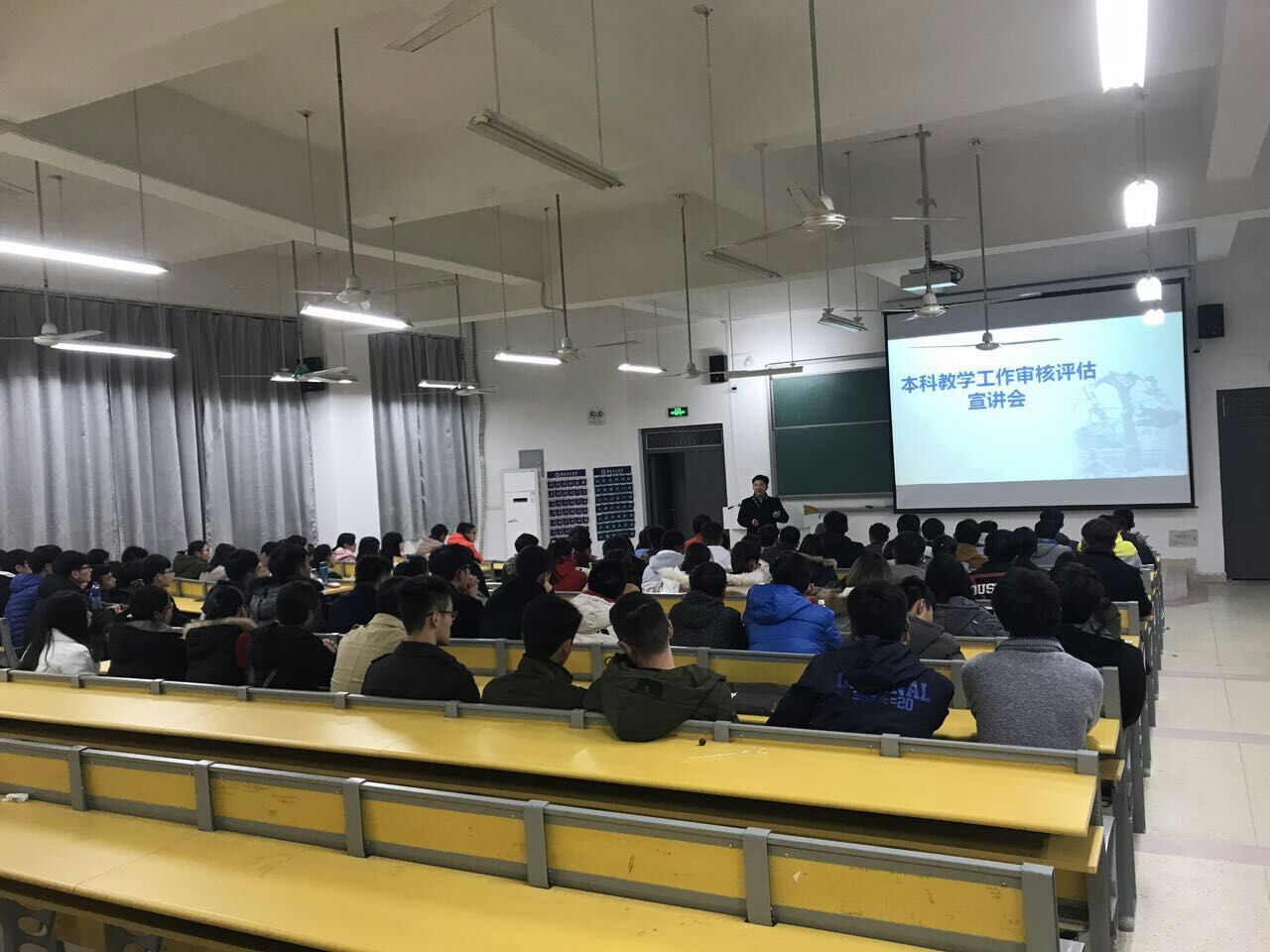 地理信息科学专业本科教学工作审核评估宣讲会在明理202教室举行。宣讲会由教学科研副院长徐良骥教授主持,王世航老师担任主讲,地理信息科学专业2014-2017级近200名学生参加。