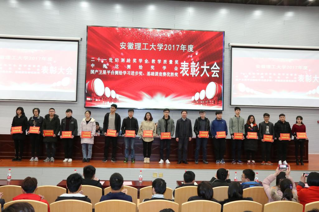 2017年度二十一世纪测绘奖学金、教学质量奖、中海达测绘奖学金、国产卫星平台测绘学习进步奖、基础课竞赛优胜奖表彰大会在舜耕会堂隆重召开。副校长郑明东应邀出席会议。二十一世纪空间技术应用股份有限公司副总经理杨耀武、广州中海达卫星导航技术股份有限公司合肥分公司总经理邾凯、安徽华印机电股份有限公司国产卫星平台首席数据官李勇和测绘老王论坛