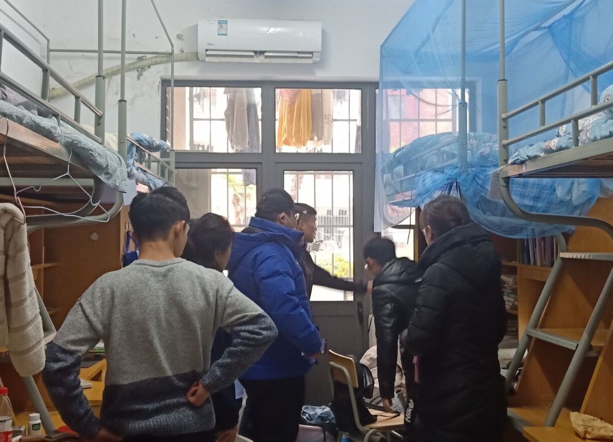 党委副书记兼行政副院长刘瑞带领各年级辅导员深入仁、爱、信、义苑四区八栋本科学生宿舍楼,重点对宿舍卫生安全状况进行了大检查,