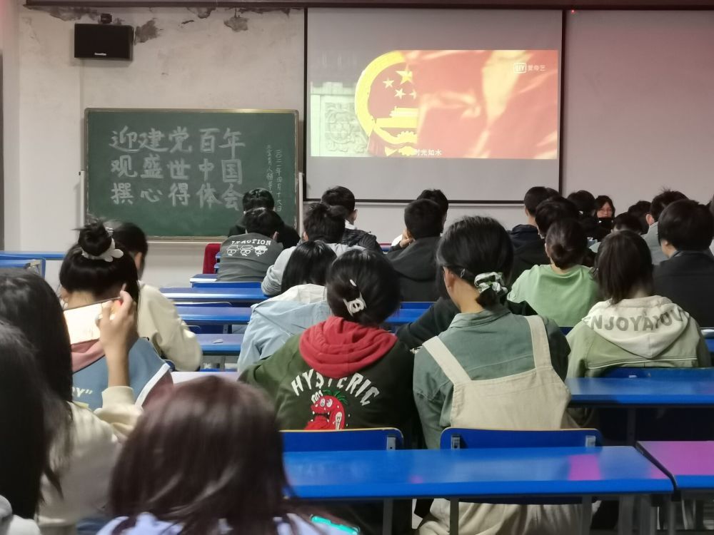 “三全育人辅导员工作室”于求本楼北512教室开展了以“学党史,跟党走”为主题的迎建党百年,观盛世中国,撰心得体会主题观影活动,共计50位同学参加了活动。