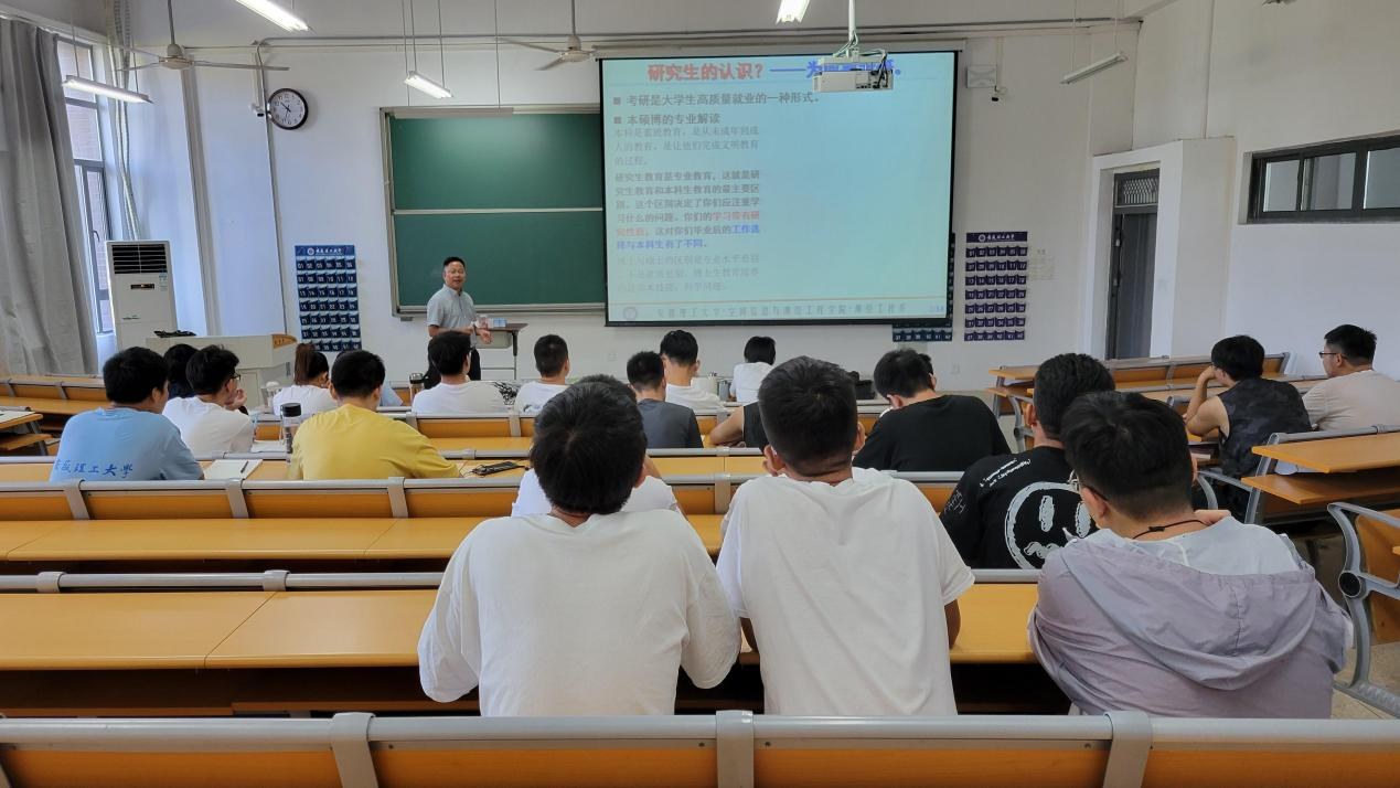 副院长王磊老师和测绘工程系杨旭老师分别对考研的必要,择校的技巧以及备考期间应注意的问题等进行了讲解。其中包括各科的复习方法、考研信息的树立、考研计划、备考心态的调整以及有关专业选择方向等等。深入分析了当下的考研形势,鼓励同学们积极考研,努力拼搏。