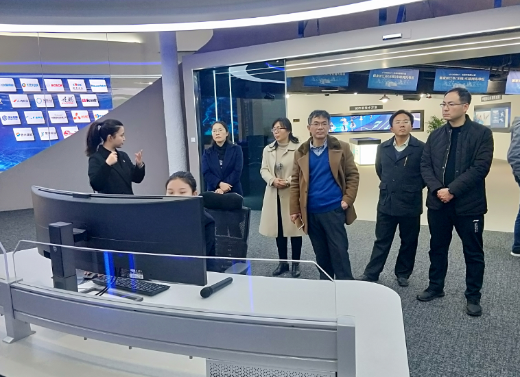 随后,余学祥一行参观了无锡车联网小镇,对自动驾驶的位置服务装备、高精度电子地图服务和数字孪生行业应用案例做了全方位了解。