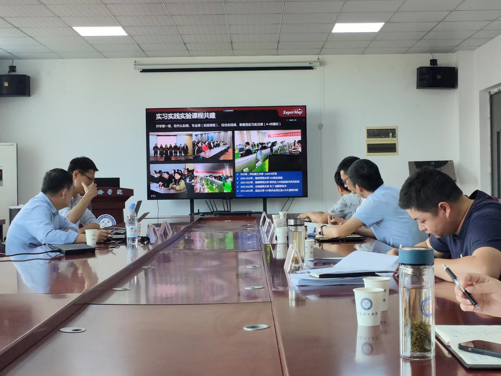会上,范洪喜致欢迎词,对马凯一行的到来表示热烈的欢迎;马凯从GIS产业与超图、自主可控创新技术发展、产教融合与人才培养等三方面作了《自主可控GIS软件技术助力人才培养》报告,并在GIS教学软件应用、教材/课程合作共建(教学辅助资料提供、学习资源与技术支持、实习实践实验课程共建、新生开学第一课、开发者训练营等)、高校GIS大赛、测绘地理信息产品技术、科研项目合作、创新就业等方面进行了深入交流。