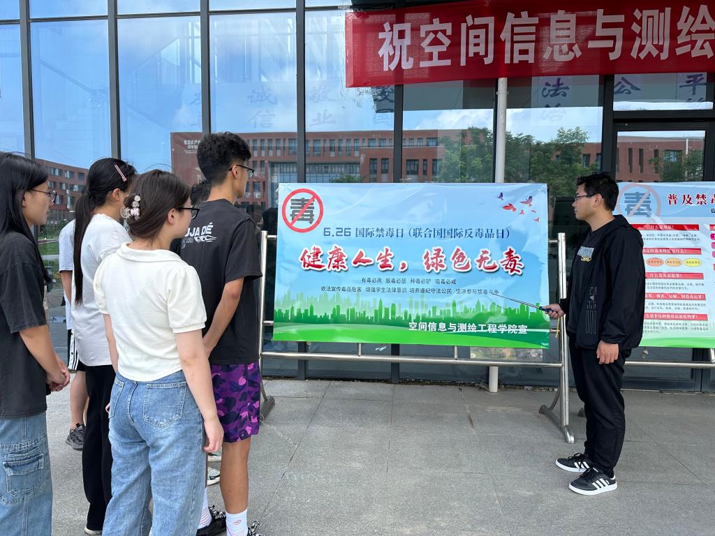 前广场,各年级学生辅导员结合相关海报以“健康人生,绿色无毒”为主题进行禁毒教育专题宣讲。辅导员们结合实际案例,从可能接触到毒品的场景,如何预防毒品、如何“禁毒防艾”等多角度进行了详细介绍,让学生深入了解禁毒法律和法规,呼吁青年群体珍重生命,远离毒品。同学们听过宣讲后,纷纷表示,作为新时代青年大学生,要自觉抵制毒品诱惑,积极主动做禁毒知识的传播者、禁毒教育的参与者,不让毒品进校园、进家庭。