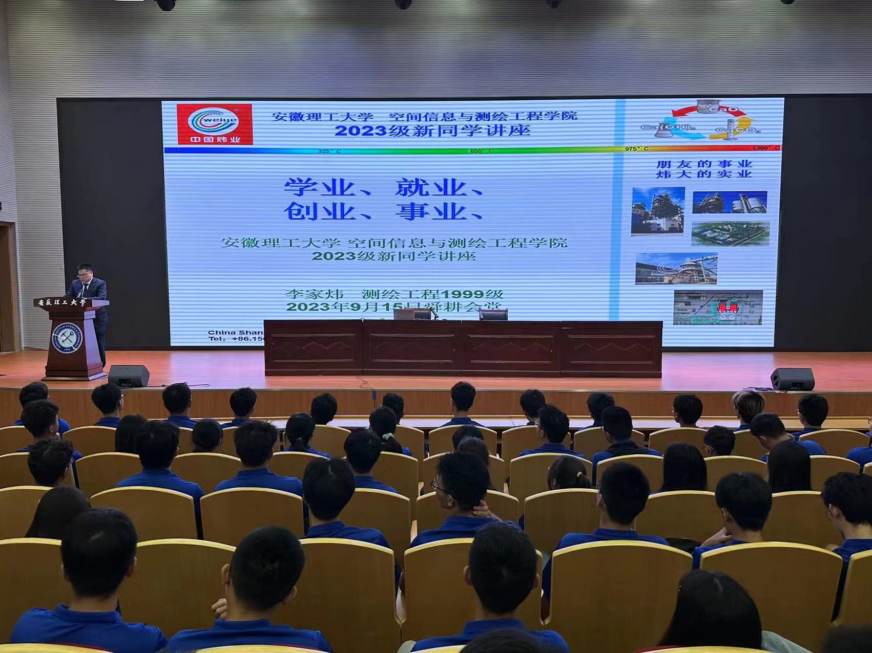 邀请,测绘工程2003届杰出校友、中国上海炜业实业有限公司总经理李家炜和测绘工程2004届杰出校友、南京信息工程大学柯福阳教授在校舜耕会堂分别为2023级全体新生作题为《学业-就业-创业-事业》和《智能时代测绘新技术,赋能新兴产业与个人发展机遇》的唤醒讲座。讲座由老王论坛