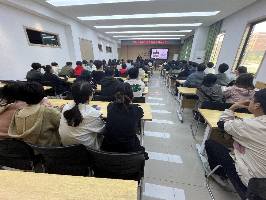 在报告中,柯福阳教授从极端天气北斗毫米高精度定位算法、北斗三维水汽反演与短临降雨预报、北斗+视觉融合技术等方面阐述团队的理论与技术创新成果,展示自主研发的低成本北斗智能一体机、单目视觉智能监测仪以及“n+1+n”边-云-端智能协同的监测预警云平台,并介绍团队成果在露天矿山边坡、尾矿库、高速公路边坡等智能监测预警的应用成效。报告内容翔实丰富,讲解风格生动有趣,成功地拓宽了师生的学术视野,并激发了他们的学术研究热情,极大地增强了学生对专业领域知识的兴趣。