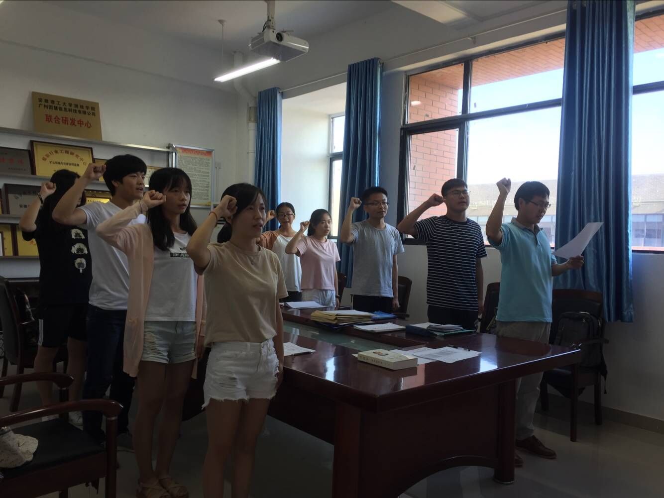 南511会议室召开支部大会,讨论并确定张倩倩等七名入党积极分子为发展对象。会后,举行了入党宣誓仪式,支部全体党员面对党旗庄严宣誓。